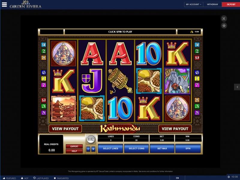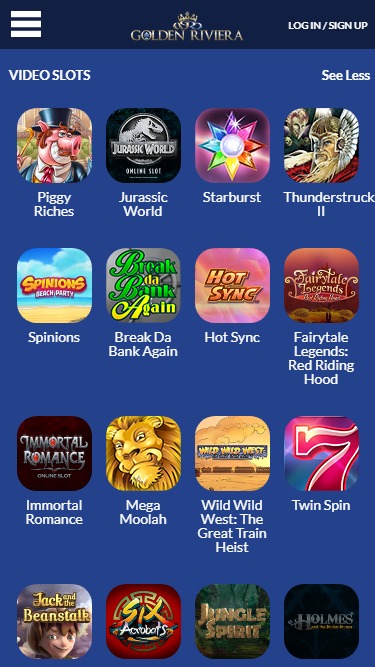 ستجد في كازينو جولدن ريفييرا مجموعة واسعة من ألعاب السلوتس، حيث يقدم الكازينو باقة ألعاب مايكروغيمينغ الكاملة. ستجد هنا العديد من الإصدارات المختلفة لألعاب الفيديو السلوتس التقليدية، بالإضافة إلى العديد من الجوائز الكبرى التراكمية، بما في ذلك ميجا مولاه، وكينج كاشالوت، وماجور مليونز.