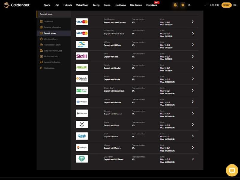 خيارات الخدمات المصرفية في Goldenbet Casino