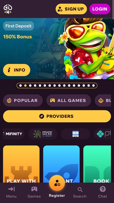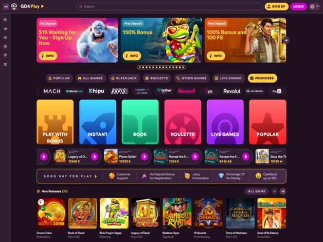 كازينو GoodDayForPlay مدعوم بواسطة Net Entertainment, Playtech, Amatic Industries, Novomatic, Play'n GO, playson, Quickspin, Thunderkick, Yggdrasil, Endorphina, IGT, Booongo, Spinomenal, Red Rake Gaming, Belatra Games, BGAMING, Evoplay, Pocket Games Soft, SmartSoft Gaming, Amusnet Interactive, Aristocrat, Ash Gaming, Blueprint Gaming, Greentube, Push Gaming, Konami, Apollo Games, RubyPlay, Rarestone Gaming, 3 Oaks Gaming, Spribe and Elbet ، وتُقدم ألعابه عبر منصة ويب تتيح لك اللعب عبر متصفح الإنترنت. كما يتوفر موقع جوال للاعبين الراغبين باللعب أثناء التنقل.