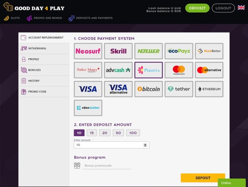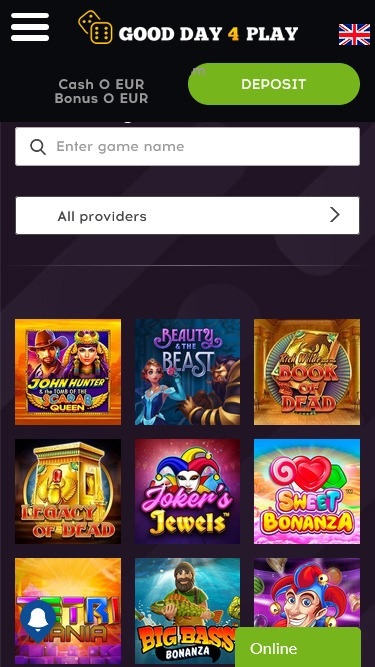 كازينو GoodDayForPlay مدعوم بواسطة Microgaming, Net Entertainment, Playtech, Amatic Industries, Evolution Gaming, Novomatic, Play'n GO, playson, Quickspin, Vivo Gaming, Yggdrasil, Wazdan, IGT, Booongo, Spinomenal, Belatra Games, 7Mojos, Games Global, Amusnet Interactive, Aristocrat, Igrosoft, Merkur Gaming and Apollo Games ، وتُقدم ألعابه عبر منصة ويب تتيح لك اللعب عبر متصفح الإنترنت. كما يتوفر موقع جوال للاعبين الراغبين باللعب أثناء التنقل.