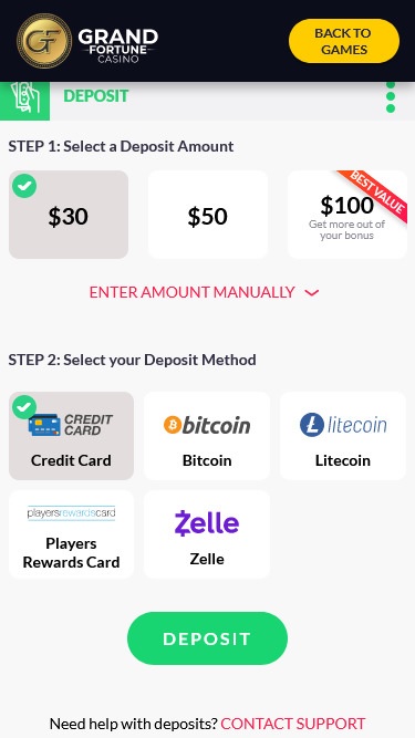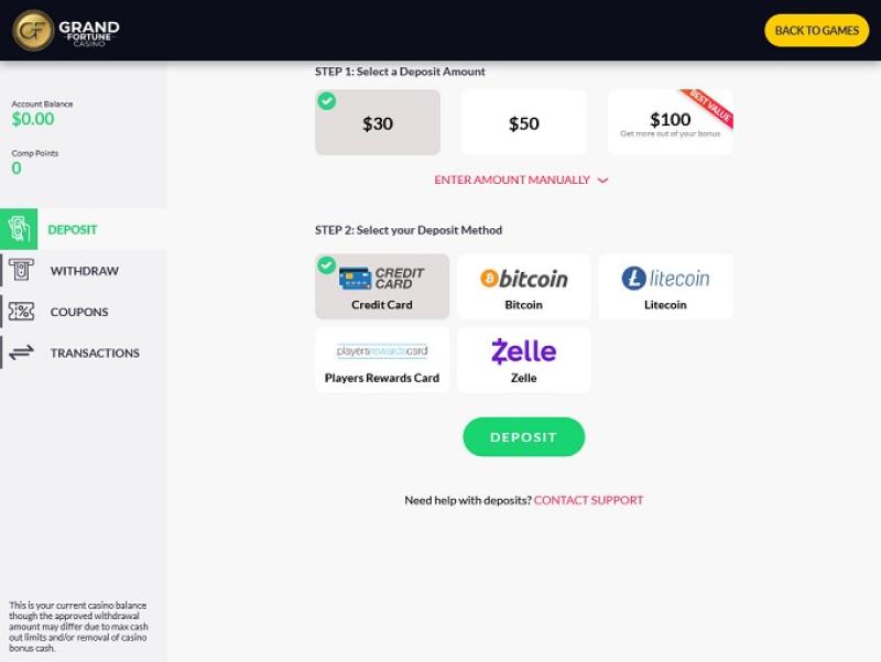 خيارات الخدمات المصرفية في Grand Fortune Casino