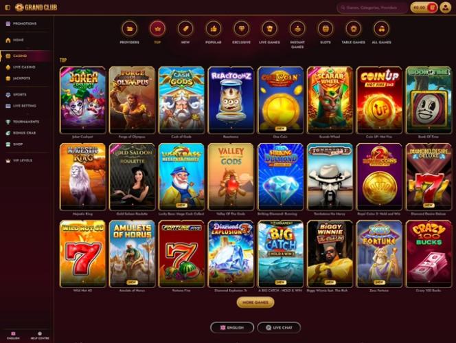 لم يعد اللاعبون الذين يبحثون عن موقع مقامرة يوفر لهم آلافًا من ألعاب القمار الفريدة على الإنترنت بحاجة للبحث، إذ يقدم لهم كازينو جراند كلوب ذلك تمامًا. هناك مجموعة كبيرة من ألعاب القمار عالية الجودة، ومن أشهرها: