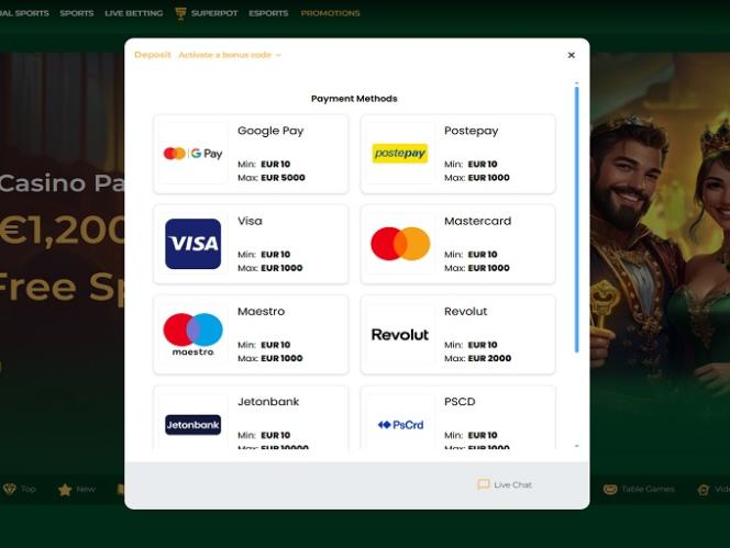 في البداية، نود أن نشير إلى أن إنشاء حساب جديد عملية سهلة وبسيطة يمكنك إتمامها بسرعة والوصول إلى مكتبة ألعاب الكازينو التي تضم تشكيلة واسعة من الألعاب تناسب جميع اللاعبين، سواءً كانوا مبتدئين أو محترفين. كما نذكر أن الكازينو يوفر خيارات المراهنات الرياضية والرياضية الافتراضية ، بالإضافة إلى العديد من خيارات المقامرة الأخرى. تشمل بعض فئات الكازينو : ماكينات القمار، ميجا وايز، شراء المكافآت، الألعاب المميزة، الألعاب العادية، الجوائز الكبرى، ألعاب الطاولة، الألعاب الساخنة والباردة، وغيرها. كما يتوفر قسم للكازينو المباشر.