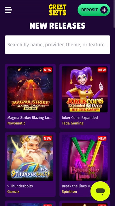 كازينو Great Slots، كما يوحي اسمه، هو موقع للمقامرة يقدم بشكل أساسي تشكيلة واسعة من ماكينات القمار التي تُتيح اللعب بأموال حقيقية. تضم مكتبة الألعاب آلافًا من ماكينات القمار الفريدة، بما في ذلك جميع الفئات والأنواع الشائعة مع ميزات مبتكرة ، مثل Megaways، والألعاب الكلاسيكية، وأحدث الإصدارات، والجوائز الكبرى، وHold n' Links، وCluster Pays، وماكينات القمار ذات الرهانات الصغيرة، وغيرها الكثير.