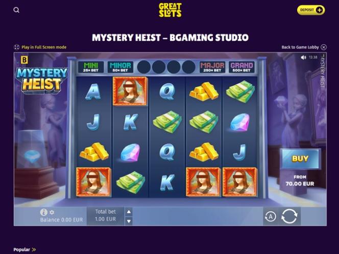 كما ذكرنا سابقًا، يُعدّ كازينو Great Slots موقعًا للمقامرة يُولي اهتمامًا كبيرًا لمكتبة ألعاب السلوتس التي تُتيح اللعب بأموال حقيقية، وإذا كنت من اللاعبين الذين يُحبّون استكشاف آلاف ألعاب السلوتس الفريدة، والتي تتميّز كلٌّ منها بآليات وميزات ومواضيع مُختلفة، فستقضي وقتًا ممتعًا للغاية هنا. جرّب لعب هذه الألعاب الشهيرة: