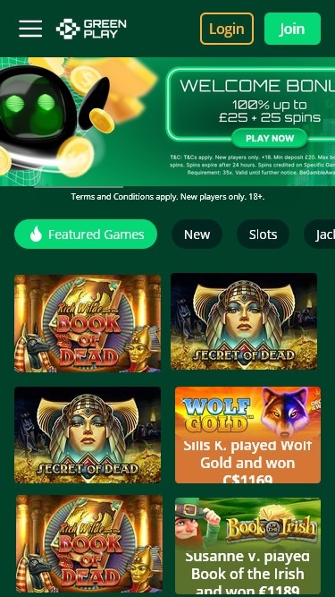 كازينو Greenplay مُحسّن للعمل على منصات متعددة، سواءً على أجهزة الكمبيوتر أو الهواتف المحمولة، ولكن تجدر الإشارة إلى أن إصدار الكمبيوتر يحتوي على شريط ثابت أعلى الصفحة، أسفل عنوان الكازينو مباشرةً، مما يبدو قديمًا بعض الشيء. بخلاف ذلك، وجدنا المنصة رائعة وسهلة الاستخدام، وإجراءات التسجيل سريعة ومباشرة.