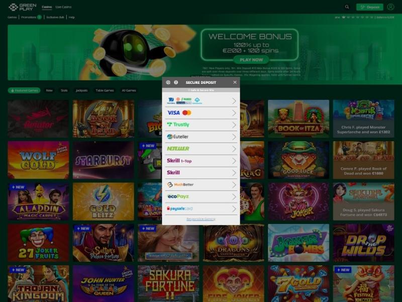 تتيح Greenplay خيارات متعددة للإيداع والسحب بما في ذلك المحافظ الإلكترونية والتحويلات البنكية وبطاقات الدفع.