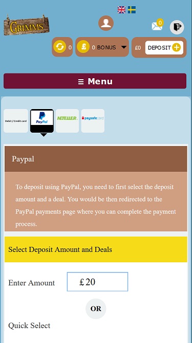 يعمل كازينو جريمز بواسطة Cozy Games ، وتتوفر ألعاب الكازينو عبر منصة إلكترونية. كما يوفر الكازينو موقعًا للهواتف الذكية والأجهزة اللوحية.خيارات الخدمات المصرفية في Grimms Casino