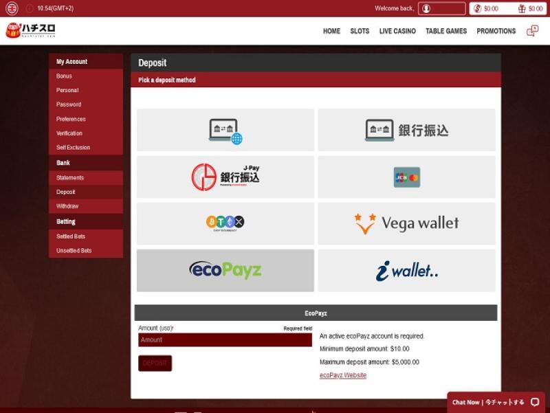 خيارات الخدمات المصرفية في HachiSlot Casino