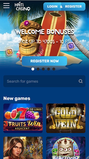 يتميز كازينو هايتي بتصميم بسيط ومنظمة، مُحسّن لأجهزة الكمبيوتر والهواتف المحمولة. صفحات الويب، المستوحاة من البحر، تتميز بلونها الأزرق. شخصيات كرتونية تُرحّب بالزوار، وأقنعة تيكي، وسفن قراصنة، كلها موجودة لاستحضار أجواء الكاريبي الساحرة...