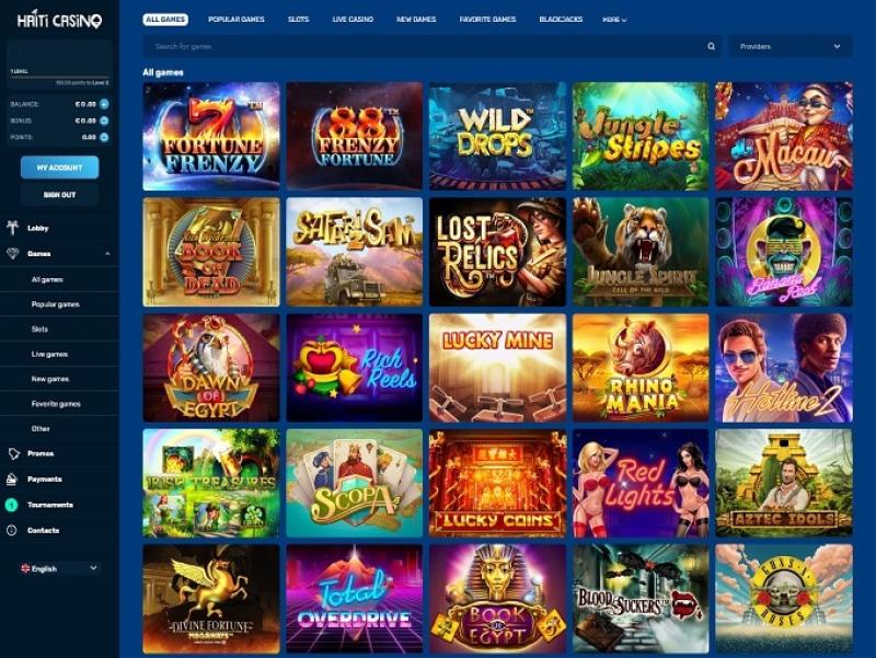 يضم كازينو هايتي الألعاب التي يوفرها مطورو البرامج الرائدون، بما في ذلك Microgaming و Pragmatic Play وEvolution Gaming... مع وضع ذلك في الاعتبار، سيتم بالتأكيد تلبية المعايير العالية لبعض المراهنين الأكثر تطلبًا من خلال محفظة الكازينو الضخمة، المليئة بالألعاب الممتازة وعالية الجودة في وضع التدريب وللأموال الحقيقية.