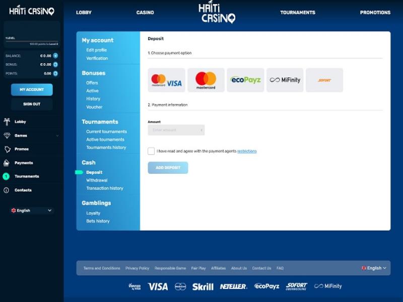 خيارات الخدمات المصرفية في Haiti Casino