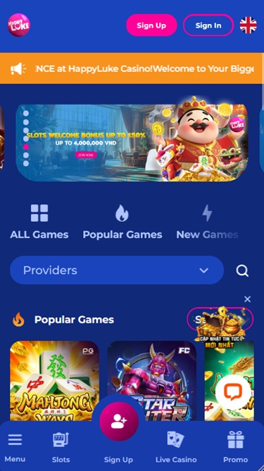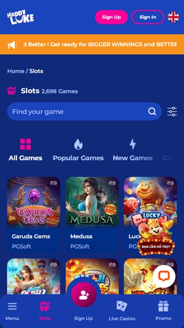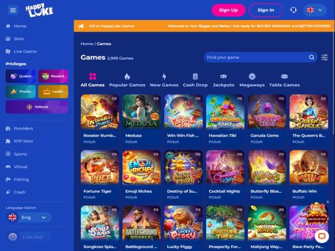 يُقدّم موقع Happy Luke ما يقارب 600 لعبة سلوتس، حيث يضمّ الموقع ألعابًا من عدّة مطوّرين كبار. سيجد اللاعبون ألعابًا مرخّصة وأخرى أصلية، بالإضافة إلى جوائز كبرى تصاعدية. كما يُغطّي الموقع ألعاب السلوتس للهواتف المحمولة، ما يتيح للاعبين فرصة اللعب أثناء التنقّل.