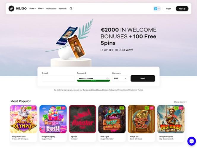هناك قسمين رئيسيين في Hejgo: ألعاب السلوتس والألعاب المباشرة.