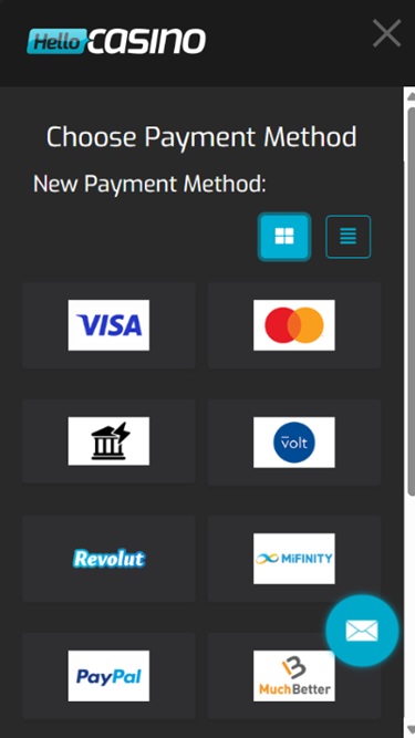 كازينو "هيلو" مدعوم بنظام Microgaming, Net Entertainment, 1x2gaming, Barcrest, Big Time Gaming, ELK Studios, Evolution Gaming, EYECON, Ezugi, lightningboxgames, Novomatic, Oryx, Play'n GO, Relax Gaming, Thunderkick, Wazdan, Realistic Games, Stakelogic, Pragmatic Play, Nolimit City, Red Tiger Gaming, IGT, Air Dice, Spinomenal, Red Rake Gaming, Fantasma Games, SYNOT Games, Revolver Gaming, Skywind, Spinmatic, Triple Edge Studios, BGAMING, Northern Lights Gaming, Stormcraft Studios, Switch Studios, Electric Elephant Games, Pocket Games Soft, All41 Studios, Gluck Games, Gameburger Studios, Neon Valley Studios, Golden Rock Studios, Swintt, Shuffle Master, SpinPlay Games, HungryBear Gaming, KA Gaming, GONG Gaming, Blue Guru Games, On Air Entertainment, Buck Stakes Entertainment, Design Works Gaming, Elysium Studios, Games Global, Bally Technologies, Blueprint Gaming, Endemol Games, Greentube, Leander Games, Merkur Gaming, NYX Interactive, Push Gaming, Tom Horn Gaming, WMS, Inspired Gaming, Gaming Realms, SG Interactive, Red7Mobile, CORE Gaming, Scientific Games, Side City Studios, Reel Time Gaming, Iron Dog Studio, Foxium, Betdigital, Just For The Win, Storm Gaming Technology, PearFiction Studios, Apollo Games, Wild Streak Gaming, Slingshot Studios, Fortune Factory Studios, Jade Rabbit Gaming, RubyPlay, 4ThePlayer, AvatarUX, Gamevy, Crazy Tooth Studio, NetGaming, High 5 Games, ReelPlay, AGS Interactive, Alchemy Gaming, Plank Gaming, Black Pudding Games, Snowborn Games, Boomerang Studios, Hacksaw Gaming, Max Win Gaming, Gold Coin Studios, Bang Bang Games, Half Pixel Studios, Slotmill, Peter And Sons, Aurum Signature Studios, Lucksome Gaming, Area Vegas, RAW iGaming, Leap Gaming, Wishbone Games, Spribe, Print Studios, Gaming Corps, HammerTime Games, Four Leaf Gaming, INO Games, Nailed It! Games, Neko Games, Reel Kingdom, Oros Gaming and Octoplay ، مما يتيح للكازينو تقديم مجموعة واسعة من الألعاب عبر منصته الإلكترونية. كما يوفر الكازينو منصة جوال للاعبين الراغبين باللعب عبر هواتفهم الذكية وأجهزتهم اللوحية.خيارات الخدمات المصرفية في Hello Casino