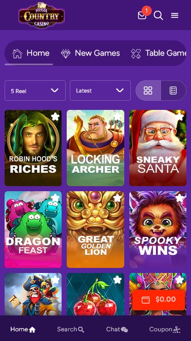كازينو هاي كانتري مدعوم من RTG، وتتوفر ألعاب الكازينو عبر برامج قابلة للتنزيل ومنصة ويب. أنصحك باستخدام النسخة الإلكترونية، إلا إذا كان اتصال الإنترنت لديك بطيئًا جدًا، فهي لا تتطلب تثبيت أي شيء على جهاز الكمبيوتر. يدعم الكازينو اللعب عبر الهاتف المحمول، ما يتيح لك اللعب على هاتفك الذكي وجهازك اللوحي.
