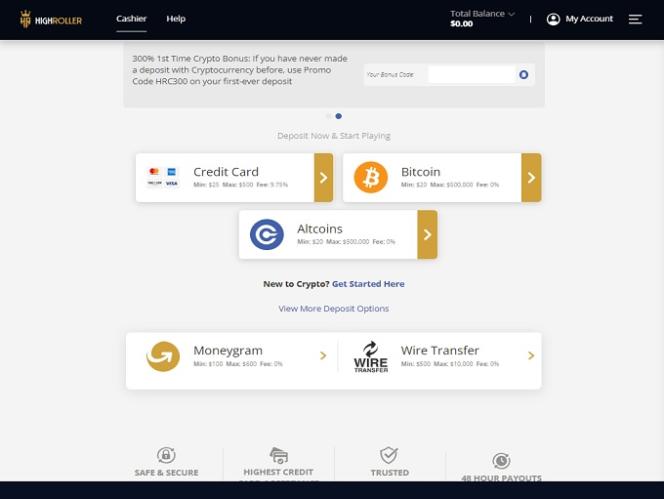 يُوصي كازينو هاي رولر باستخدام البيتكوين كإحدى أسرع وأسهل طرق الإيداع والسحب. يستغرق تمويل حسابك باستخدام البيتكوين حوالي خمس عشرة دقيقة.