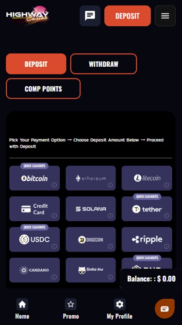 كازينو هاي واي يعمل بنظام Real Time Gaming, BetSoft, Rival, Saucify, Visionary iGaming, Betgames, Nucleus Gaming, Spadegaming, BGAMING, Genii, Wager Gaming, Dragon Gaming, FastSpin, Dragoon Soft and Urgent Games ، وجميع ألعاب الموقع متاحة عبر متصفح الإنترنت. يتميز الموقع بتصميم جذاب وسهل التصفح، ويحتوي على شريط بحث يُسهّل العثور على ألعاب مُحددة. يدعم هاي واي اللعب على الأجهزة المحمولة بالكامل، ما يُتيح لك اللعب على هاتفك أو جهازك اللوحي إذا رغبت في ذلك.المقامرة المسؤولة ودعم العملاء والأمان
