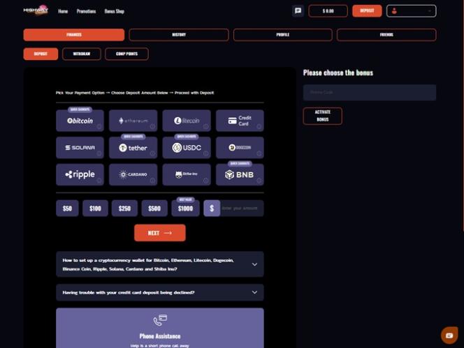 ستجد صفحة مخصصة للمقامرة المسؤولة في أسفل صفحة كازينو هاي واي، والتي توفر معلومات حول تحديد إدمان القمار ومكافحته. يوفر الكازينو حدودًا للإيداع، وفترات سماح، وخيارات استبعاد ذاتي للاعبين. بالنسبة لكازينو مرخص من كوراساو، يُعد هذا أمرًا جيدًا، لأن العديد من الكازينوهات خارج المنطقة لا تملك صفحة خاصة بها على الإطلاق.يمكن التواصل مع خدمة العملاء عبر الدردشة المباشرة أو البريد الإلكتروني أو الهاتف. أستخدم دائمًا خاصية الدردشة المباشرة إن وُجدت، وقد استخدمتها هنا. وجدتُ أن الممثل الذي تحدثتُ معه سريع الاستجابة وقادر على الإجابة على أسئلتي المتعلقة بمراهنات المكافآت. أُقيّمهم بتقييم متوسط مقارنةً بكازينوهات أخرى تعمل بنظام RTG.