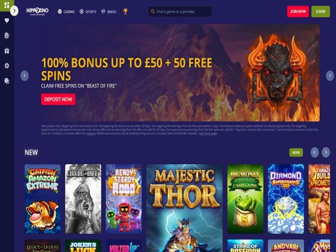 كازينو HippoZino هو موقع مراهنات عبر الإنترنت تم تأسيسه في عام 2013 بواسطة ProgressPlay Ltd. يتمتع الكازينو بمكتبة ألعاب ضخمة وهو معروف بسرعة صرف الأرباح، على الرغم من أن متطلبات الرهان العالية على العروض الترويجية قد تكون غير مرغوب فيها بالنسبة للبعض.