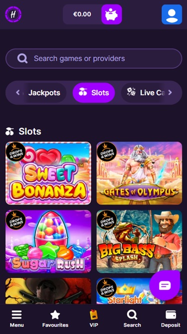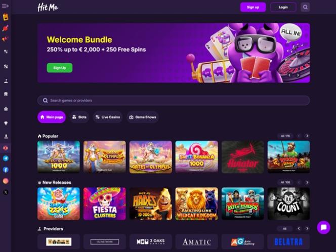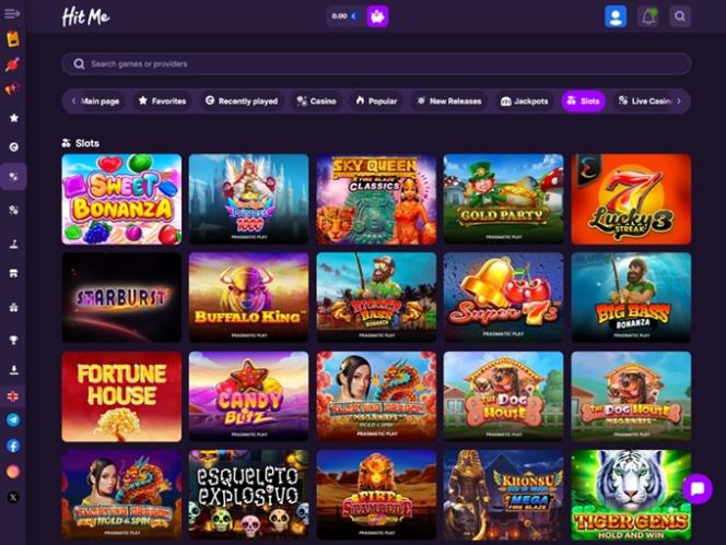 إذا كان اهتمامك الرئيسي هو تصفح مكتبة ألعاب واسعة، فسيكون كازينو Hit Me Bet هو الكازينو الإلكتروني الأمثل. لقد أعدّت العلامة التجارية مجموعة مذهلة من ألعاب الكازينو للاعبين، ويتوسع فهرسها باستمرار مع إصدارات جديدة.