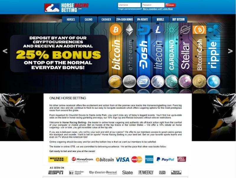 Horse Racing Betting هي شركة مراهنات رياضية تُركز على فرص مراهنات الخيول، وهي كازينو إلكتروني يرحب بلاعبي الكازينو في الولايات المتحدة الأمريكية. وقت كتابة هذه المراجعة، لم يكن الموقع مرخصًا.