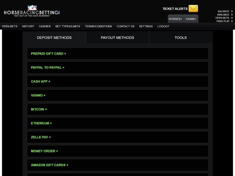 كما ذكرنا سابقًا، توفر مراهنات سباق الخيل مجموعة متنوعة من العملات المشفرة وخيارات الخدمات المصرفية المشفرة. كما يمكن استخدام بطاقات الخصم والائتمان، والتحويلات المصرفية المباشرة، والمحافظ الإلكترونية الشائعة لتمويل الحساب وسحب الأموال المتاحة.