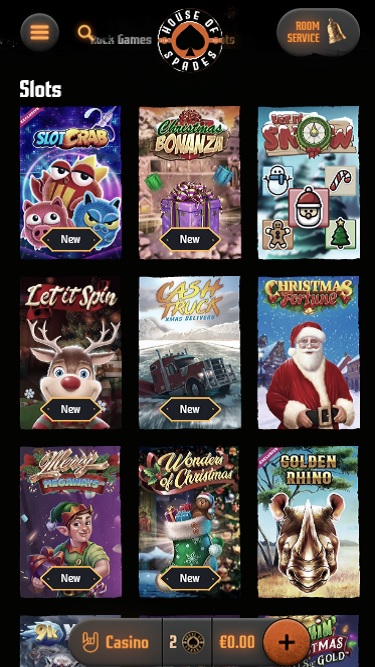 ألعاب السلوتس الموصى بها هي: Slot Crab، Christmas Bonanza، Let it Snow، Workshop Wonders Spin-Crease، Let it Spin، Cash Truck Xmas Delivery، Christmas Fortune، Merry Megaways، Wonders of Christmas، Golden Rhino، 9k Yeti، Cave of Xmas، Fishin' Christmas Pots of Gold، Xmas Secret، Bullet Hole، Spinanga، Book of Xmas Jungle Rells، Adventure of Bobby Woods، Vilk and Little Red، Alpha Eagle، Spin Jones and the Crystal Skull، Plinko، Surfin' Joker، Arabian Secret، 40 Sevens، Mega Greatest Catch، Elven Princesses، Book of Secrets، El Cowboy Megaways، Burning Classics Go Wild، The Wild Wings Of Phoenix، Angry Dogs، Xtreme Summer Hot، Mighty Gorilla، Legendary Diamonds، Book Of Pumpkin، Jekyllz Wild Ultranudge، Blood Rage، Aladdin's Quest، Striking Joker، Rosh Immortality Cube Megaways. 40 Super Heated Sevens، Buffalo Hold and Win، Cash Pig، Piggy Bjorn - Muspelheim's Treasure، Wazamba، Amazon Kingdom، 1 Million Fortunes Megaways، Book Of Rampage، Jaguar Princess، Big Bad Wolf Megaways، Razor Shark، Figaro، Lucky Rooster، Buffalo Blitz، Book of Sun: Choice، Book of Sirens - Golden Pearl، Big Bucks Bandits Megaways، The Bowery Boys، Reno 7's، San Quentin xWays، Joker Win، Eye of Anubis، Fire In The Hole...