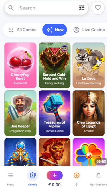 هناك فئتان رئيسيتان: الألعاب والعروض الترويجية . بالنقر على "الألعاب"، ستتمكن من الوصول إلى قائمة بجميع الألعاب المتاحة، والألعاب الجديدة، والكازينو المباشر ، واختيارات الهايب، والجوائز الكبرى، ومشتريات المكافآت. تزخر قائمة مطوري برامج الكازينوهات الإلكترونية بأسماء مرموقة مثل كويك سبين، وريلاكس جيمينج، وسبينومينال، وبراغماتيك بلاي ، وغيرها من الشركات المرموقة التي تُنتج محتوى عالي الجودة يُفضله المقامرون عادةً. تُضفي ألعاب الكازينو المباشر ديناميكيات رائعة، خاصةً إذا كنت تُفضل المحتوى التفاعلي، حيث يُمكنك التواصل مع الموزعين المباشرين وأعضاء الكازينو الآخرين.