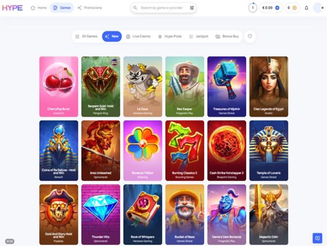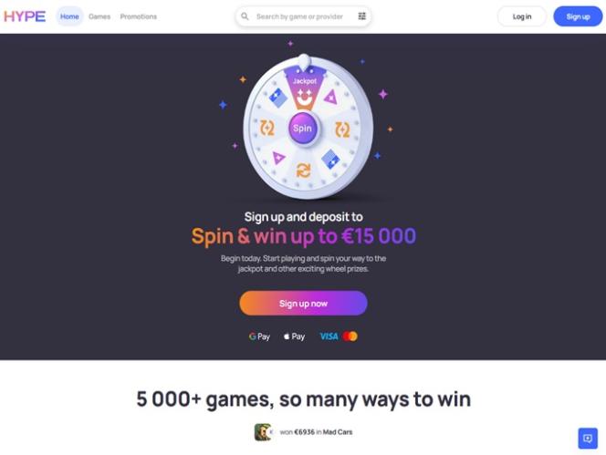 لدى اللاعبين من الدنمارك كازينو آخر مثير للاهتمام عبر الإنترنت صديق للدنمارك يجب عليهم بالتأكيد التحقق منه، حيث يبدو كازينو Hype، للوهلة الأولى، أنيقًا ومنظمًا جيدًا.