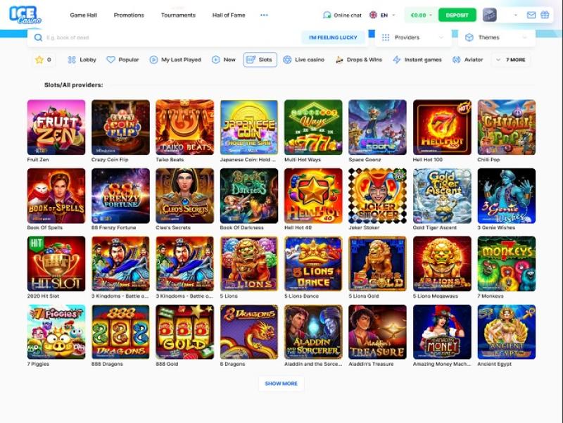 تتوفر مئات من ماكينات القمار بالفيديو في IceCasino، بالإضافة إلى عدد كبير من الألعاب الكلاسيكية بثلاث بكرات. كما تتوفر سلسلة من الجوائز الكبرى التراكمية، والتي تقدم جوائز بملايين الدولارات في أي وقت.برنامج نقاط المنافسة