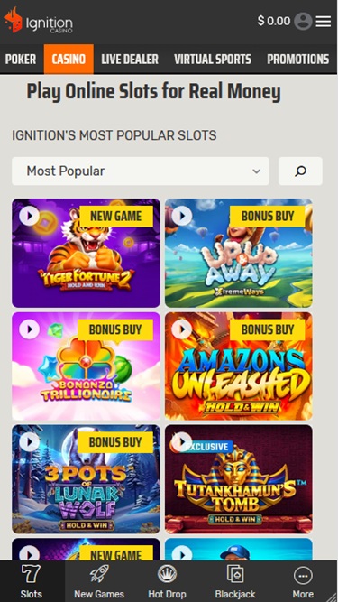 هناك عدد كبير من ماكينات القمار بالفيديو المتاحة للعب في كازينو Ignition، وهناك أيضًا جوائز كبرى متزايدة متاحة، والتي تمنح اللاعبين فرصة الفوز بجوائز كبيرة تبلغ قيمتها آلاف الدولارات.