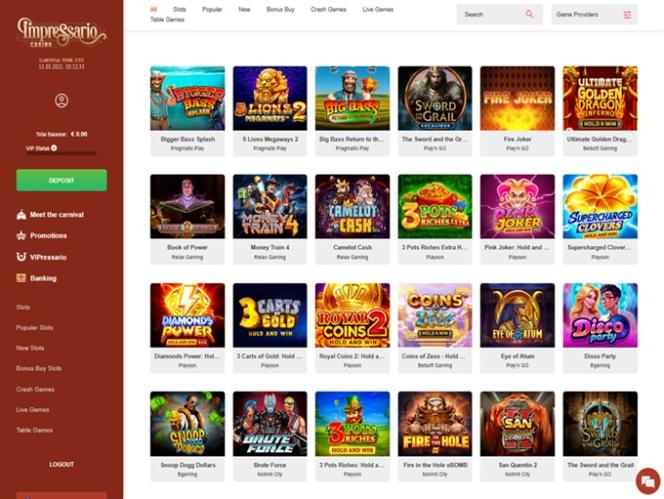 على سبيل المثال، يضم كازينو إمبريساريو مجموعة ضخمة من موفري البرامج تضم أكثر من 120 مطورًا، مما يوفر مكتبة ألعاب ضخمة تضم آلاف الألعاب الفريدة التي يمكنك الاستمتاع بها. ستجد هنا ما يناسب الجميع؛ حتى أكثر اللاعبين خبرة لن يواجهوا أي مشكلة في العثور على ما يبحثون عنه بالضبط.