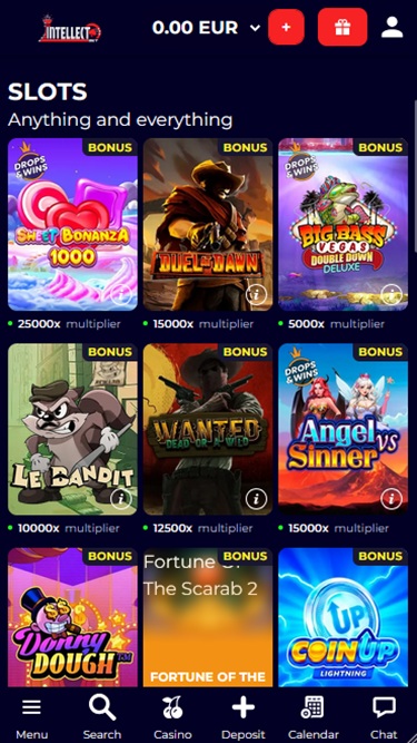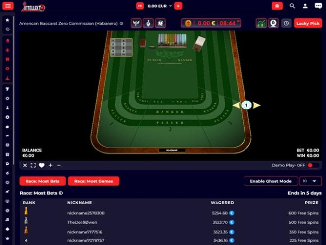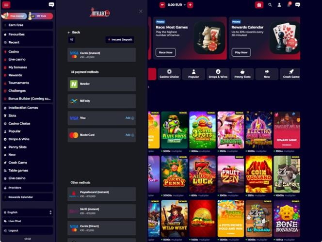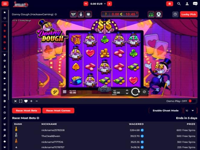 في هذا الجانب، لم يُخيب مُشغِّل الكازينو الآمال. يُقدِّم الكازينو مجموعةً غنيةً من الألعاب الشيقة والمتنوعة. وقد حرصت IntellectBet على ترفيه اللاعبين بسهولة، مع احتماليةٍ شبه معدومةٍ للملل. ولا يقتصر الأمر على المؤثرات البصرية والشكل الجذاب فحسب، بل نذكر أيضًا سهولة التصفح، والتسجيل السريع والمباشر، والعروض الترويجية المُثيرة ، وغيرها الكثير.