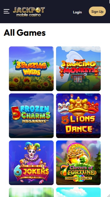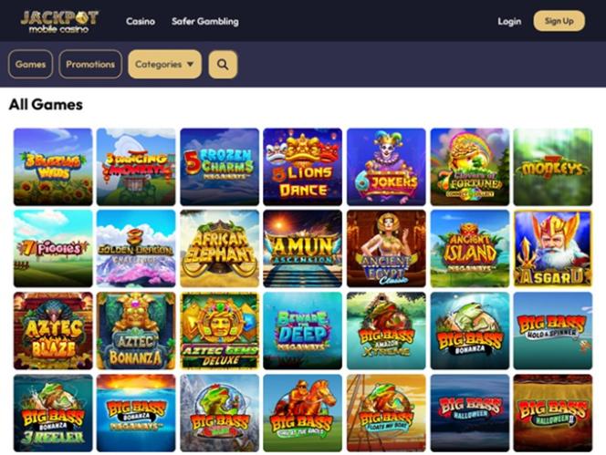 توجد مجموعة كبيرة من ماكينات القمار بالفيديو للعب في Jackpot Mobile Casino، ويحتوي الكازينو أيضًا على مجموعة مختارة من الجوائز الكبرى التدريجية من Net Ent، والتي تتميز بجوائز نقدية ضخمة يمكن أن تجعلك مليونيراً على الفور.