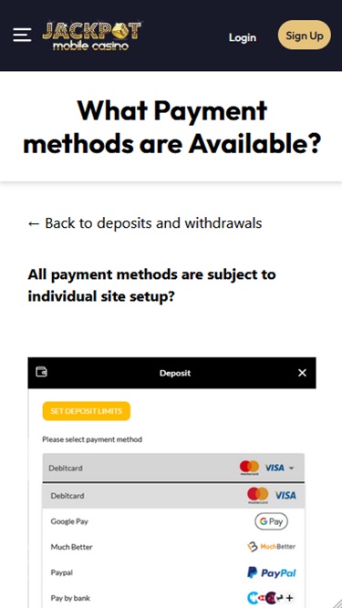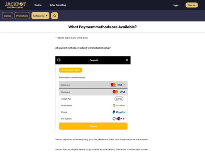 خيارات الخدمات المصرفية في Jackpot Mobile Casino