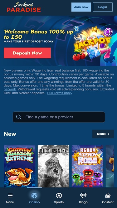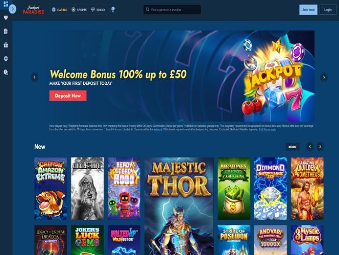 Jackpot Paradise هو كازينو على الإنترنت مملوك لشركة Progress Play Ltd. ويعمل Jackpot Paradise منذ عام 2014 واكتسب سمعة إيجابية بين اللاعبين بفضل مكتبته الضخمة من ألعاب الكازينو وإدارة الكازينو الممتازة.معلومات الكازينو