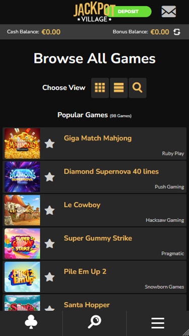 تضم مجموعة ألعاب Jackpot Village أكثر من أربعة آلاف لعبة سلوتس، مليئة بأفضل العناوين، مع خيارات مكافآت شيقة وموضوعات ألعاب جذابة. سواء كنت لاعبًا جديدًا أو متمرسًا، ستجد في هذا الكازينو ألعاب سلوتس تناسب ذوقك.