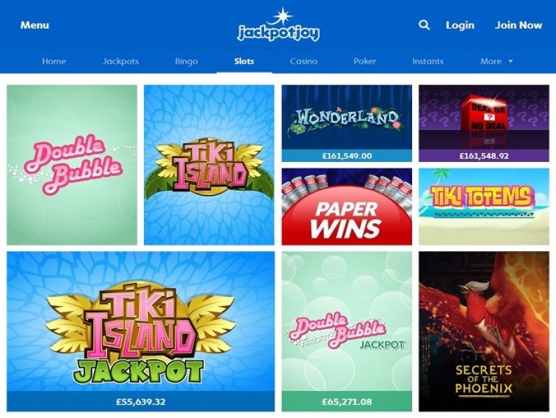 تُعدّ ماكينات القمار جزءًا لا يتجزأ من مكتبة كازينو JackpotJoy، والتي تضم العديد من الألعاب من أفضل المطورين عالميًا. تتضمن ألعاب الكازينو عشرات ماكينات القمار، متعددة الخطوط والكلاسيكية، مع مجموعة صغيرة ولكنها رائعة من الجوائز الكبرى التراكمية.