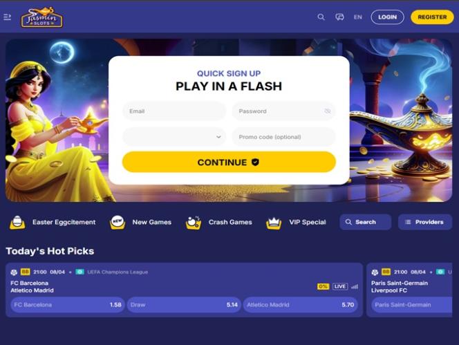 مستوحى من جماليات وقصص ألف ليلة وليلة ، يأتي كازينو JasminSlots الإلكتروني مجهزًا بجميع الأدوات اللازمة لجعل رواد الكازينو ومراهني الرياضة يشعرون بالترحيب والتقدير خلال إقامتهم.