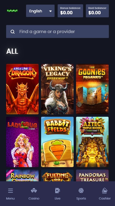 مع أنماط الألوان الخضراء والزرقاء الزاهية والرسومات الجميلة، يبدو موقع الألعاب هذا، للوهلة الأولى، ممتعًا للغاية. توفر صفحات الكازينو المنظمة جيدًا معلومات مفيدة حول خدمات الكازينو، والتي سيقدرها بالتأكيد مبتدئو المقامرة عبر الإنترنت.