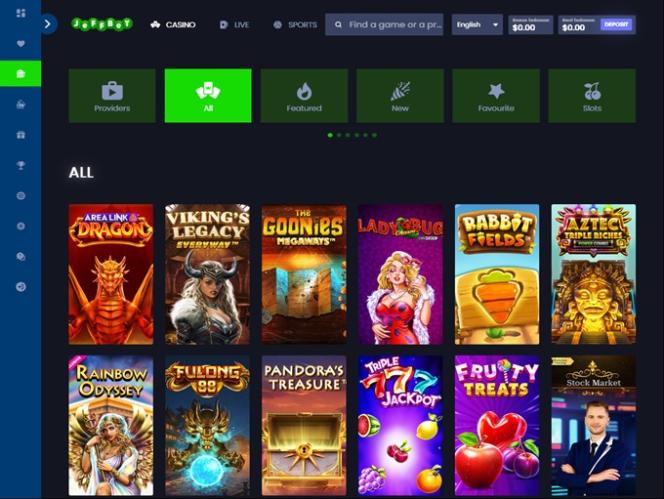 بعض المتعاونين مع JeffBet هم: BetSoft، Evolution Gaming، Booming Games …