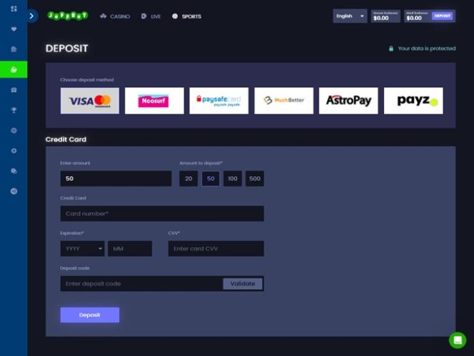 خيارات الخدمات المصرفية في JeffBet Casino