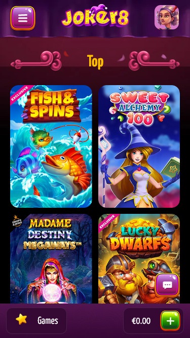 منصة Joker8 مليئة بالعناصر والميزات المصممة بعناية، والتي تعمل بسلاسة على جميع الأجهزة المتاحة، سواءً كانت جوالاً أو حاسوباً. سواءً كنت تفضل المقامرة أثناء التنقل أو من جهاز الكمبيوتر الشخصي، فهذا الموقع يُلبي احتياجاتك!