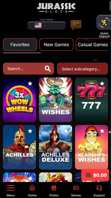 يضم موقع Jurassic Slots قسمًا مميزًا لألعاب السلوتس، مما يضمن عدم شعور اللاعبين بالملل أبدًا في هذا الكازينو الإلكتروني ، سواء كانوا مبتدئين في عالم المقامرة عبر الإنترنت أو لاعبين محترفين. وتشمل هذه المجموعة محتوى عالي الجودة مصممًا ليناسب مختلف الأذواق من خلال تقديم مجموعة متنوعة من السمات والميزات وآليات اللعب.