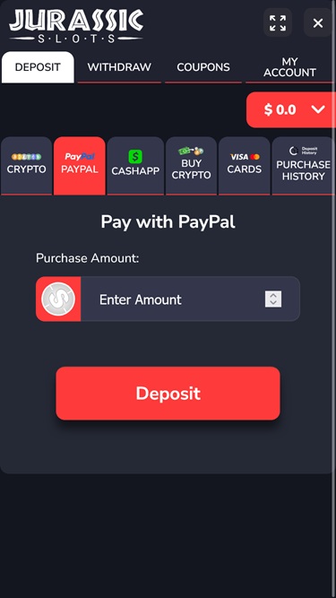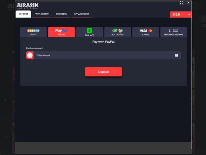إذا كنت تتساءل عن خيارات الدفع التي يمكنك استخدامها هنا، فلاحظ أن Jurassic Slots يدعم العديد من حلول الدفع الحديثة، سواء كانت عملات مشفرة أو تقليدية.