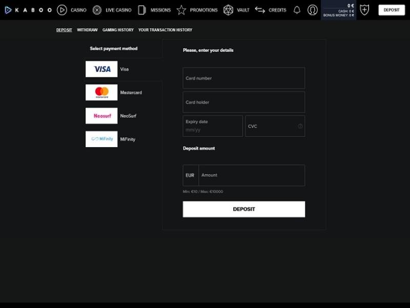 خيارات الخدمات المصرفية في Kaboo Casino