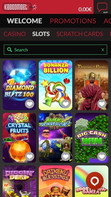 ستجد هنا ألعاب سلوتس رائعة على الإنترنت لتجربها، مثل Bonanza Billion وDiamond Blitz 100 وThrones of Persia وInferno Diamonds وDiggin' Deep وBig Cash Win وTropical Gold وEggs of Gold، وغيرها الكثير. حرص مشغلو Kaboombet على توفير العديد من ألعاب ماكينات القمار على منصتهم.برنامج نقاط المنافسة