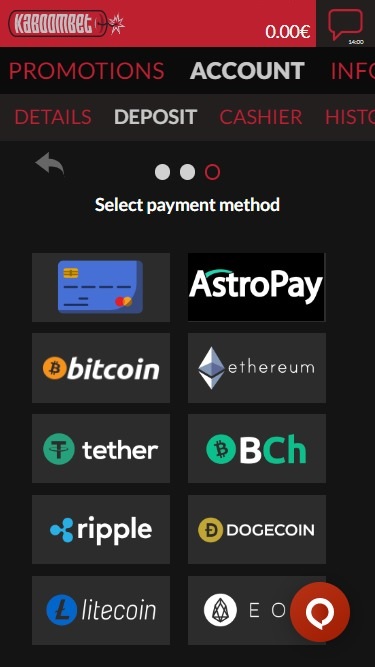 الخدمات المصرفية جزءٌ أساسيٌّ من أي كازينو إلكتروني. في Kaboombet، يمكن للاعبين اختيار إيداع أو سحب الأموال باستخدام طرق الدفع الشائعة مثل MasterCard وVisa وNeteller وPaysafecard وTrustly. كما يُقدّم الكازينو إيداعاتٍ بالعملات المشفرة للاعبيه.