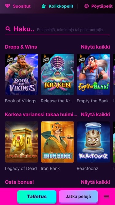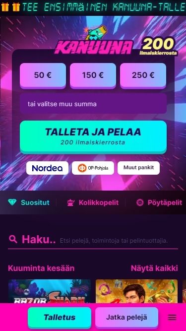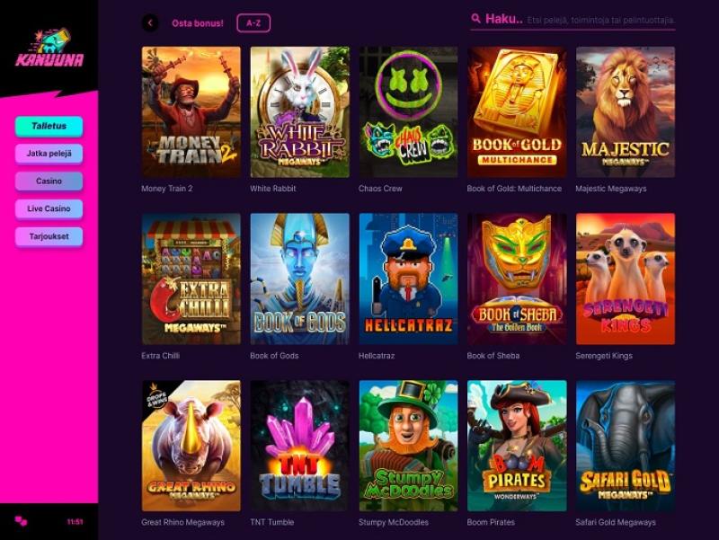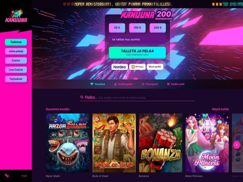 كازينو كانونا هو كازينو على الإنترنت تأسس عام ٢٠٢١، وتملكه وتديره شركة 1Up Services Ltd. بفضل مجموعته الرائعة من الألعاب، بدأ الكازينو يجذب انتباه المقامرين الفنلنديين فورًا، بالإضافة إلى ذلك، يمكن لجميع اللاعبين المشاركة في برنامج VIP رائع بمستويات غير محدودة!